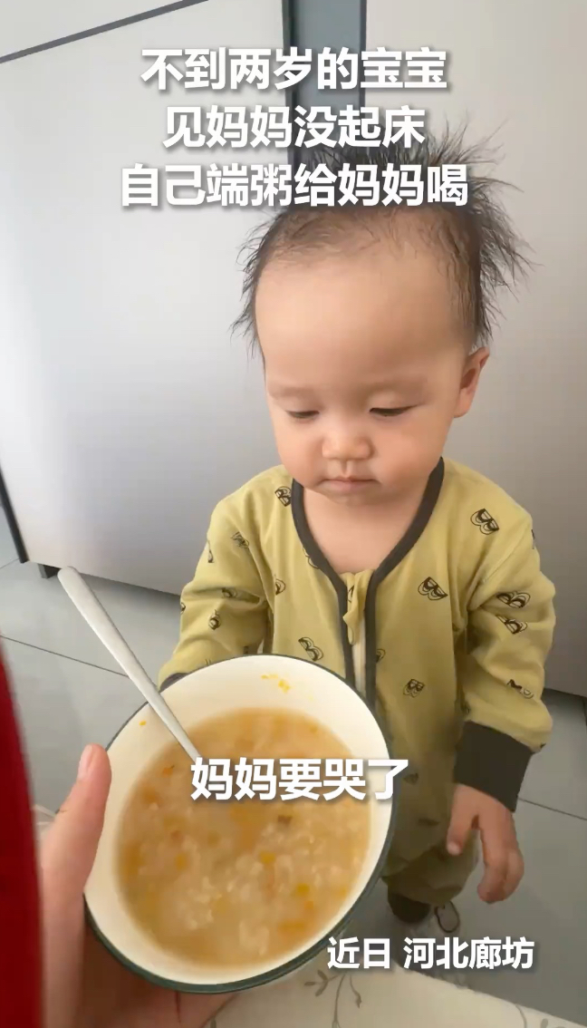 不到两岁的宝宝见妈妈没起床,自己端粥给妈妈喝,网友:孩子比你想象中更爱你