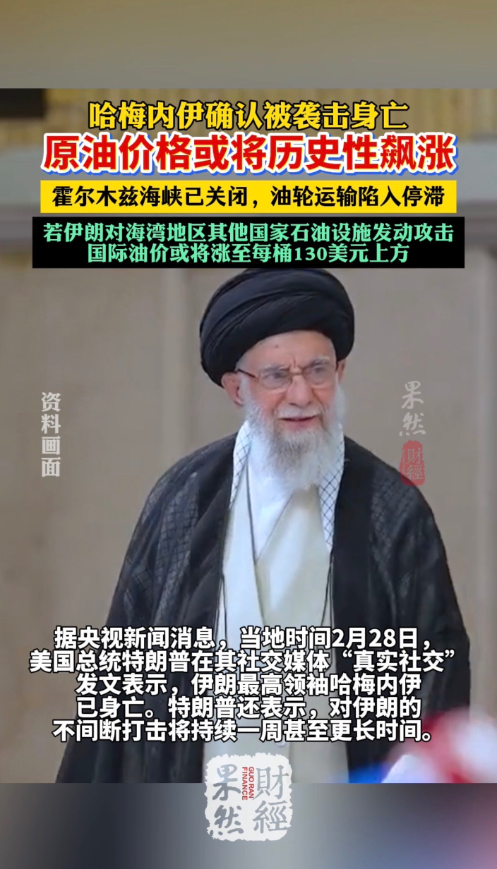 果然财经|哈梅内伊确认身亡!原油价格或将历史性飙涨