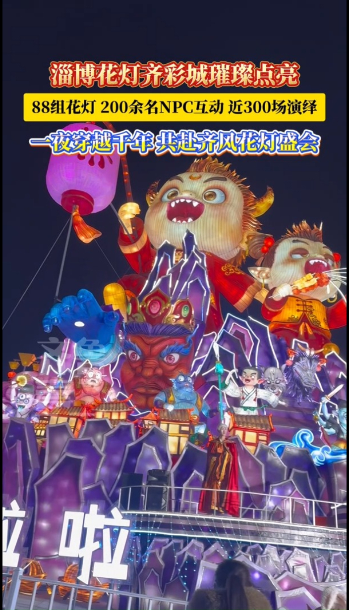 淄博花灯齐彩城亮灯,流光溢彩点亮小年夜