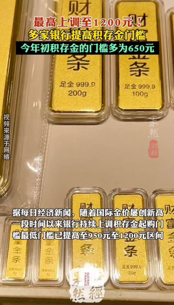 果然财经|最高上调至1200元!多家银行提高积存金门槛