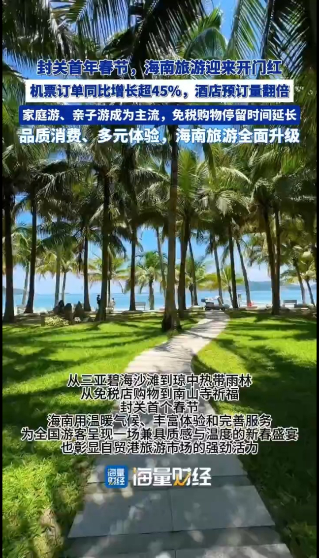 海量财经 | 封关后首个春节,海南旅游热:机票量同比增长超45% 量价齐升