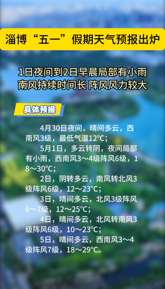 俺们淄博丨淄博五一假期天气预报出炉