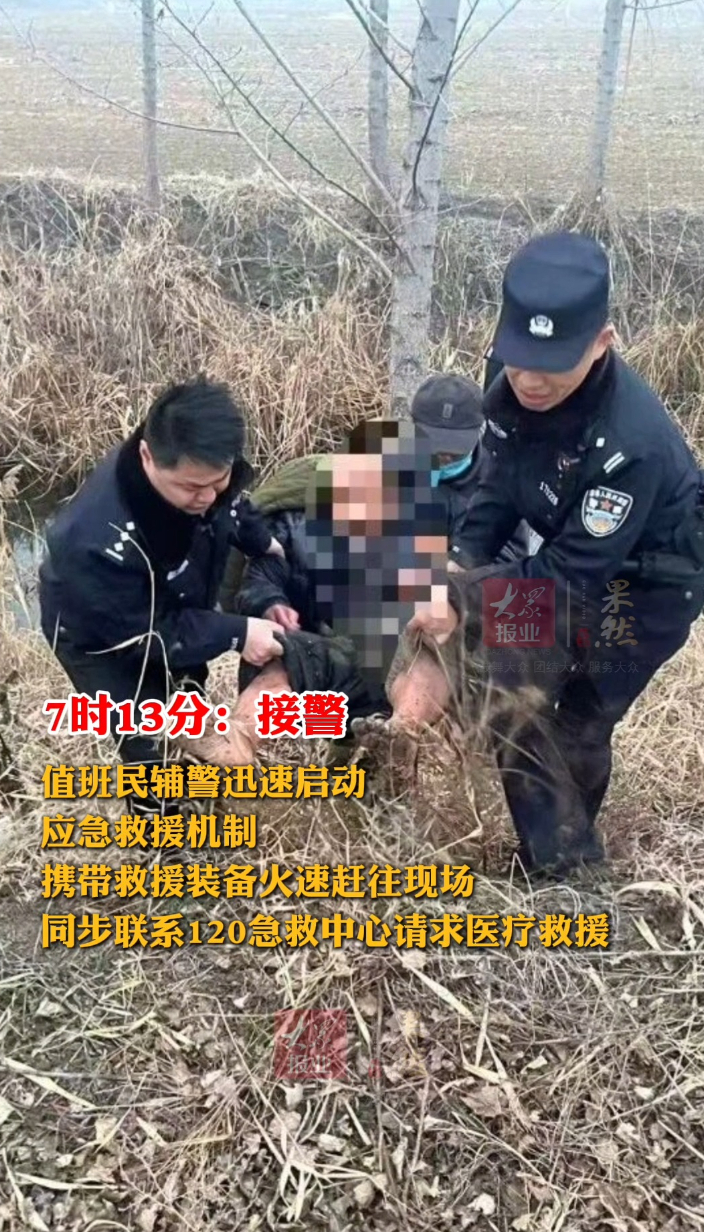 7:13接警,7:19下水!聊城公安寒日冰河里托起落水老人