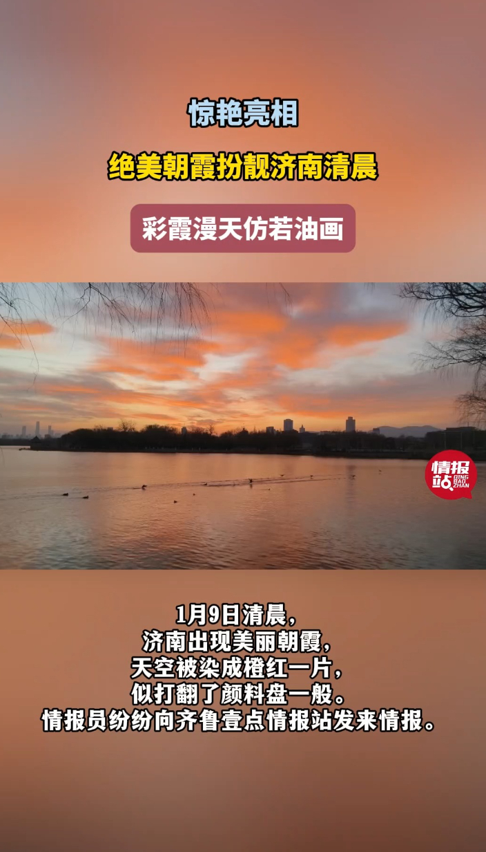 天气情报站|金粉色朝霞扮靓济南清晨,彩色交织浪漫绚丽仿若油画
