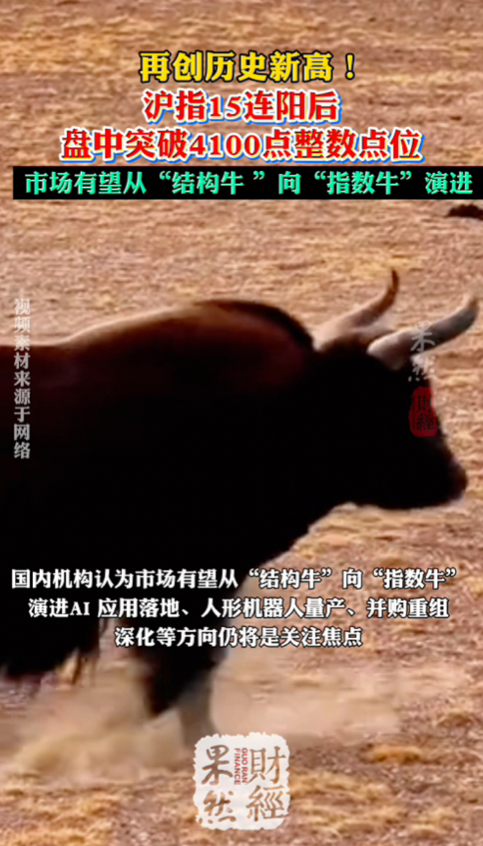 果然财经|再创新高!沪指15连阳后盘中突破4100点整数点位
