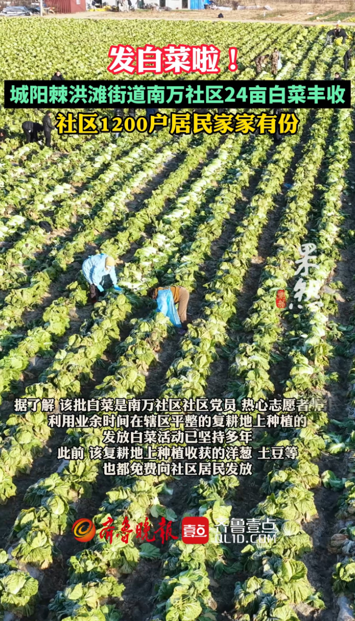 果然视频丨城阳棘洪滩南万社区24亩白菜丰收,居民免费领白菜