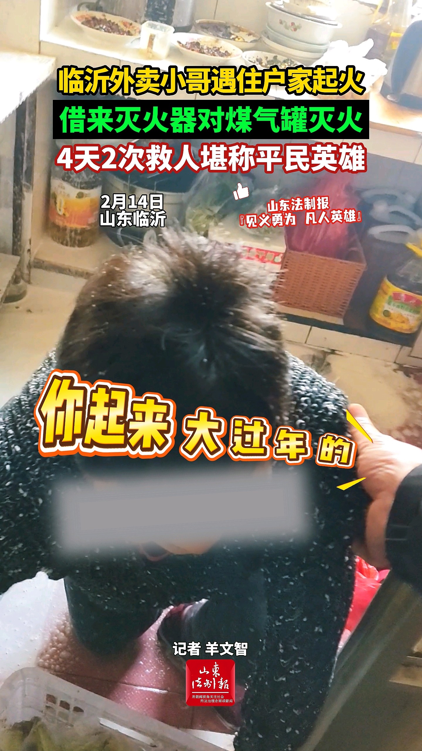 临沂外卖小哥遇住户家起火,借来灭火器对煤气罐灭火,4天2次救人堪称平民英雄