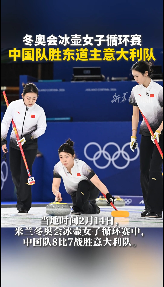 冬奥会冰壶女子循环赛中,中国队8比7战胜东道主意大利队
