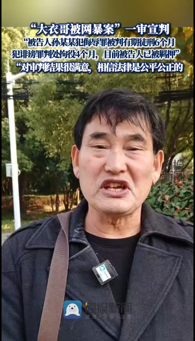 “大衣哥被网暴案”一审宣判:“被告人孙某某犯侮辱罪被判有期徒刑6个月,犯诽谤罪判处拘役4个月”