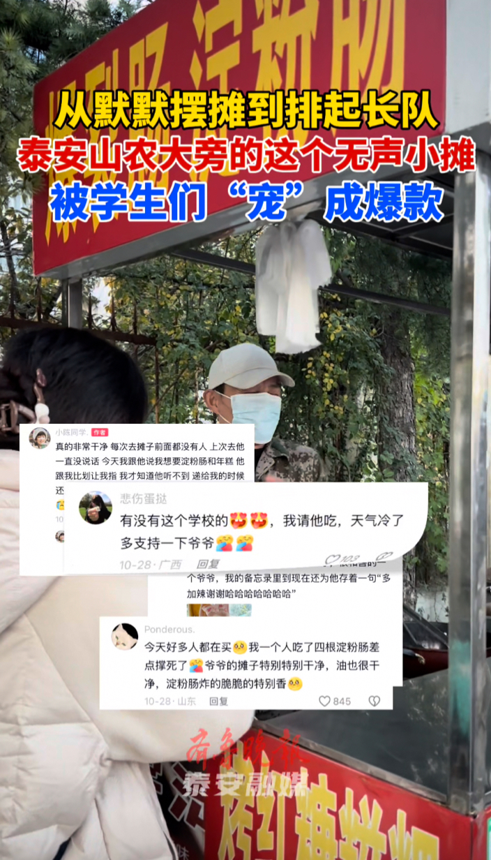 果然视频|从默默摆摊到排起长队,泰安山农大旁的这个无声小摊,被学生们“宠”成爆款