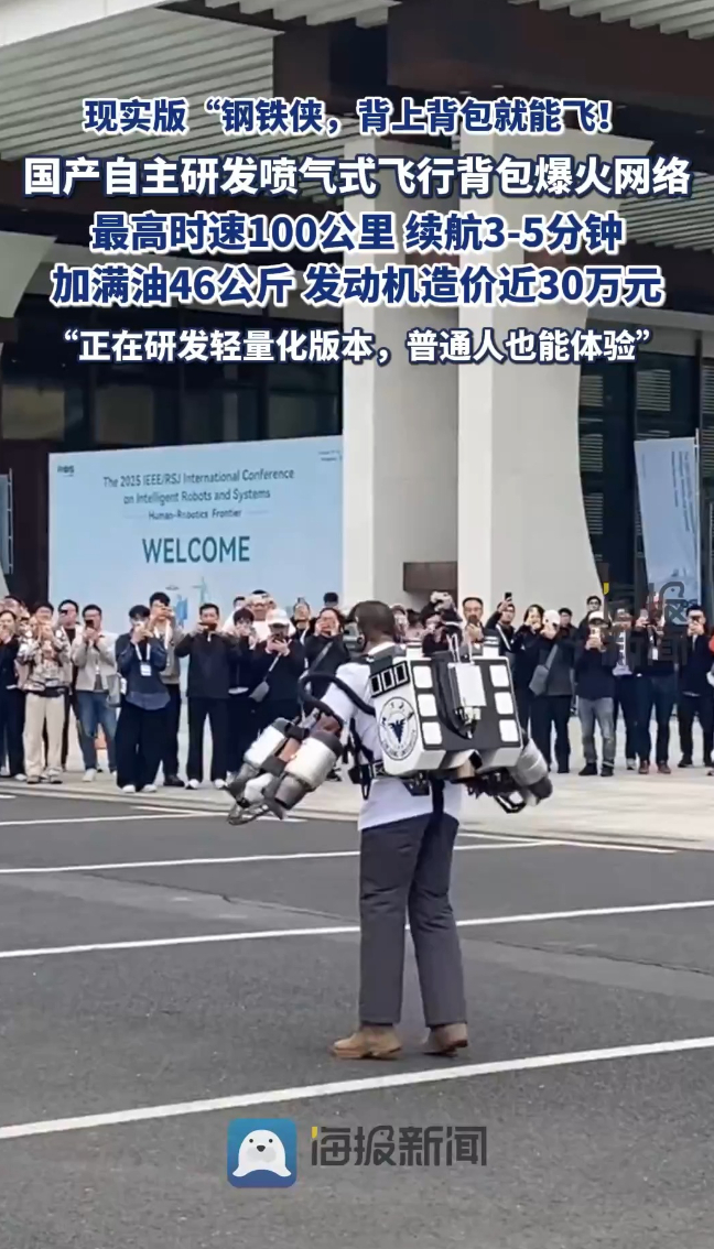 国产自主研发喷气式飞行背包爆火网络,研发团队:正在研发轻量化版本,普通人也能体验