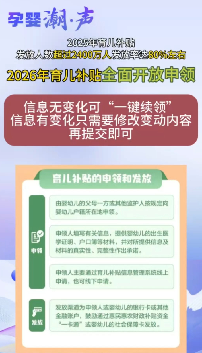 孕婴潮声|2026年育儿补贴全面开始申领,操作指南请查收