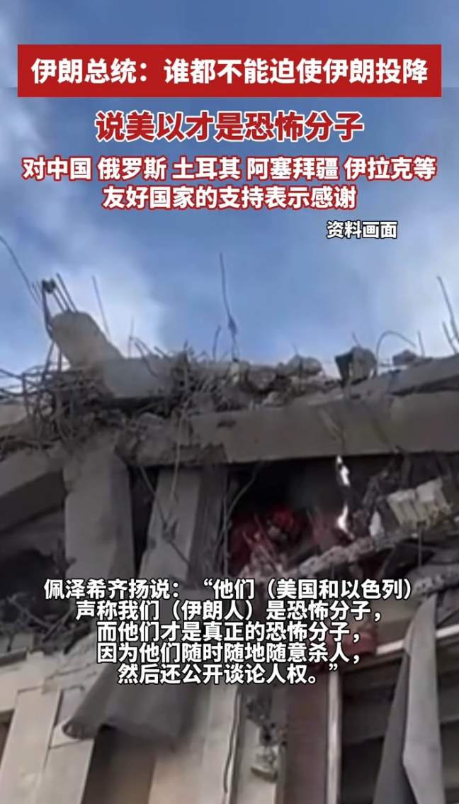 伊朗总统:谁都不能迫使伊朗投降!对中国、俄罗斯、土耳其、阿塞拜疆、伊拉克等友好国家的支持表示感谢