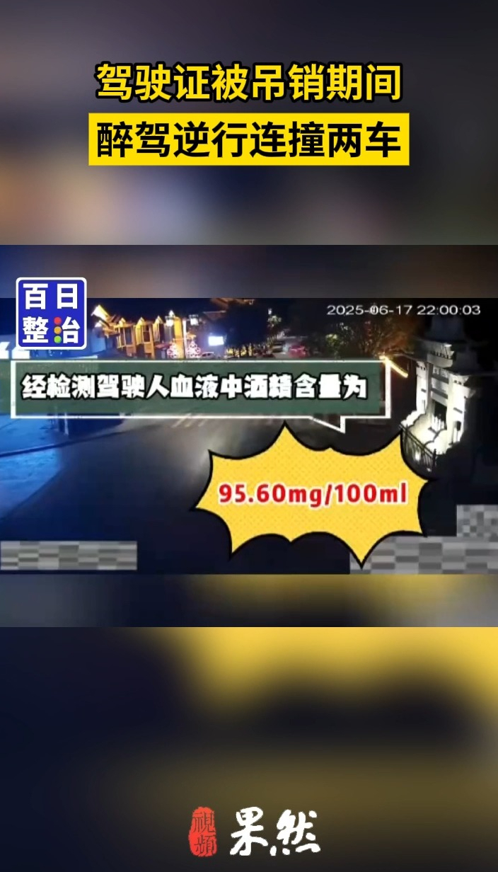 百日整治丨驾驶证被吊销期间醉驾逆行连撞两车,负全责!