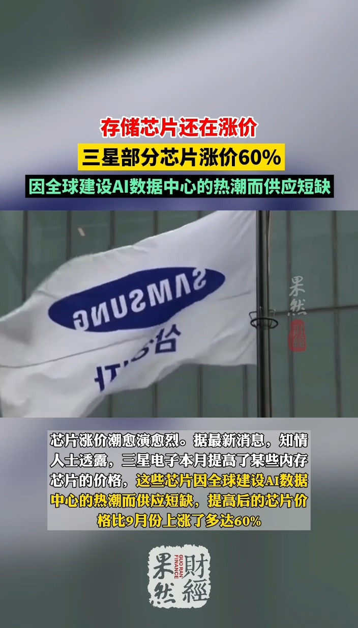 果然财经|存储芯片还在涨价,三星部分芯片涨价60%