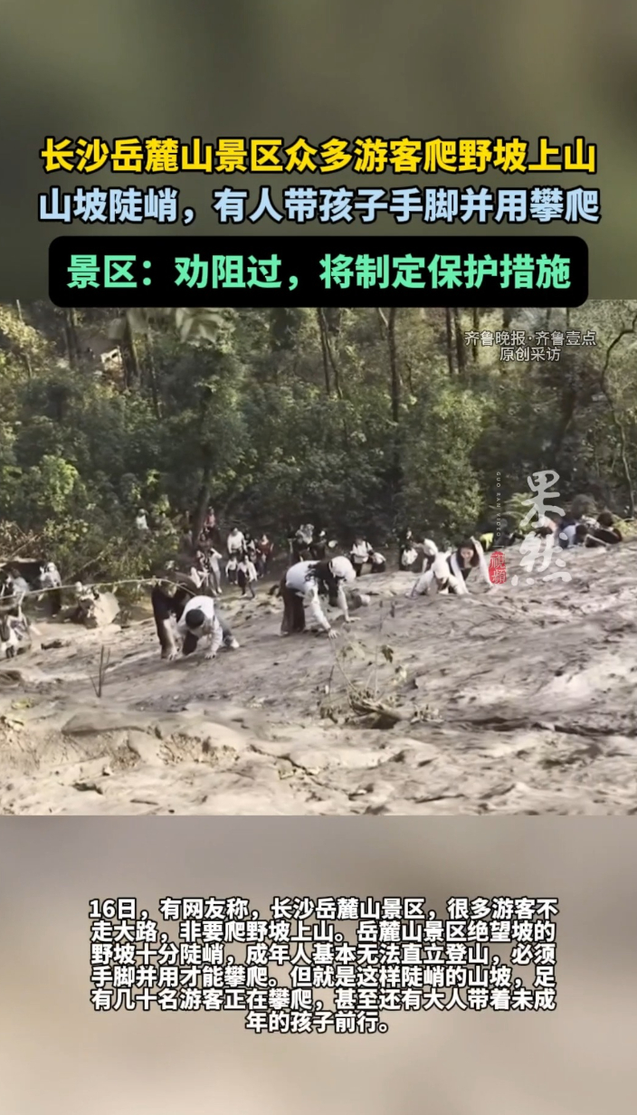 果然视频|长沙一景区众多游客手脚并用爬野坡上山!景区回应:劝阻过