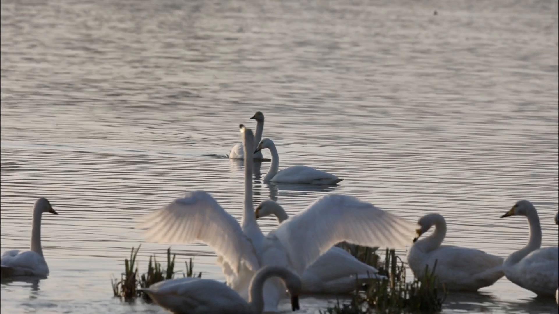 冬日济南天鹅湖,翅膀拍打着湖面,叫声此起彼伏,生机勃勃。