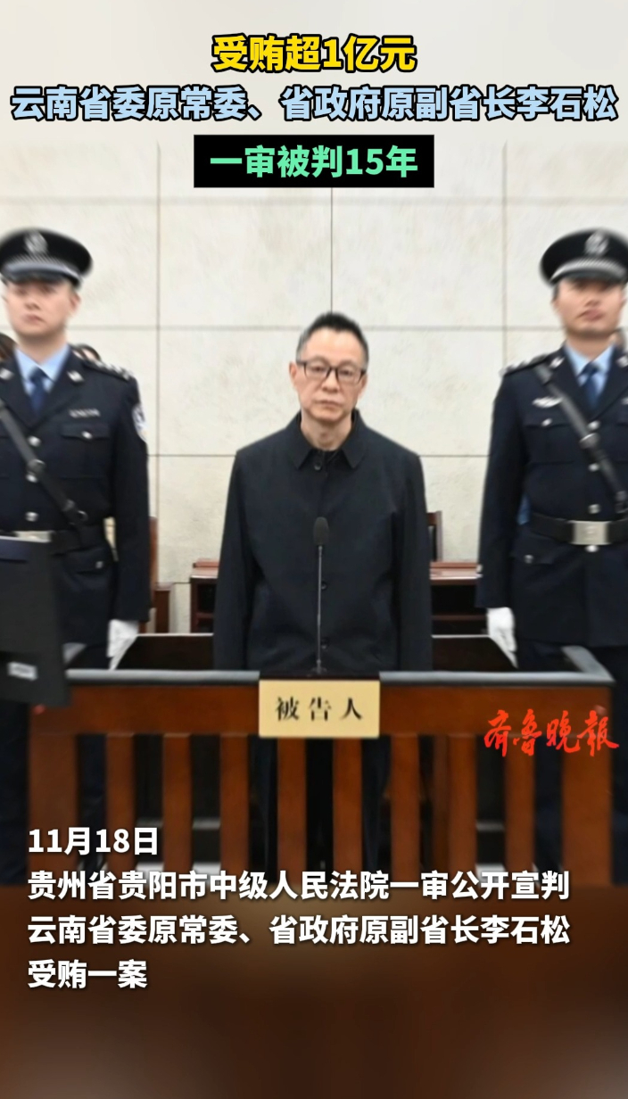 云南省委原常委、省政府原副省长李石松一审被判15年