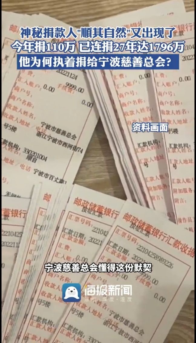 主播说丨神秘捐款人“顺其自然”又出现了 今年再捐110万 27年捐款1796万