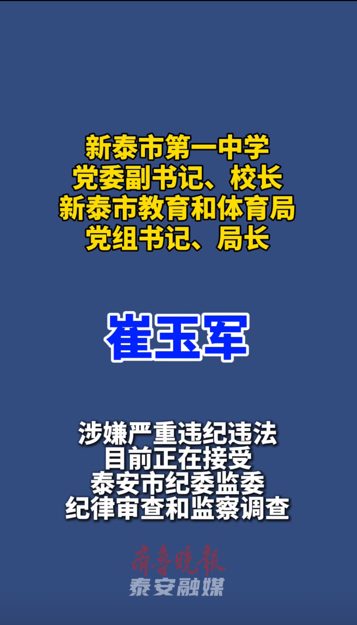 果然视频|新泰市第一中学党委副书记、校长,新泰市教育和体育局党组书记、局长崔玉军接受审查调查