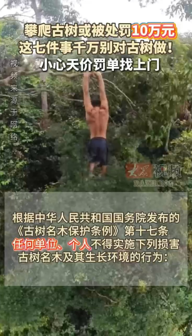 攀爬古树或被处罚10万元!这七件事千万别对古树做!小心天价罚单找上门