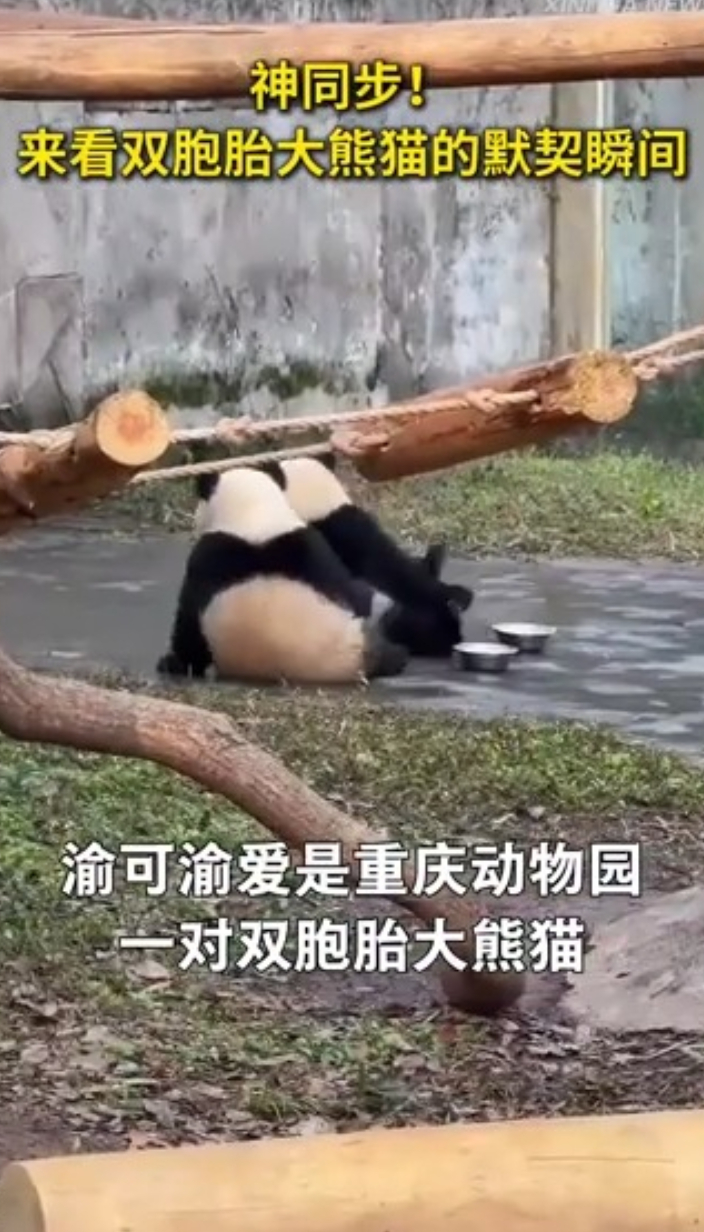 神同步!来看双胞胎大熊猫的默契瞬间