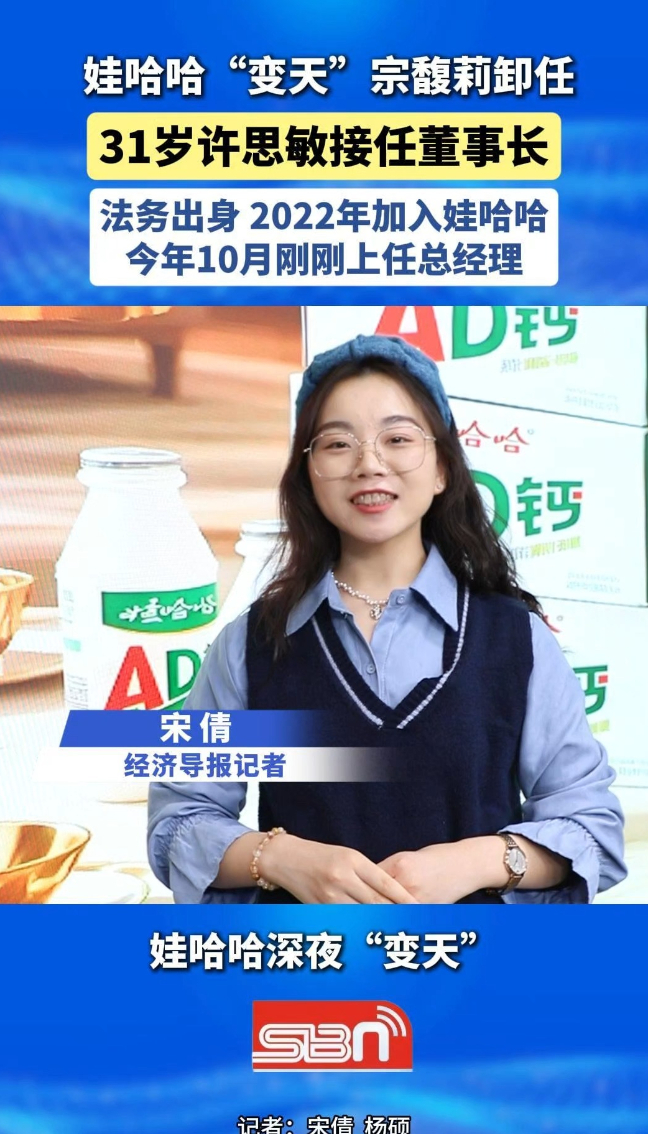 娃哈哈“变天”!宗馥莉卸任,31岁许思敏接任董事长