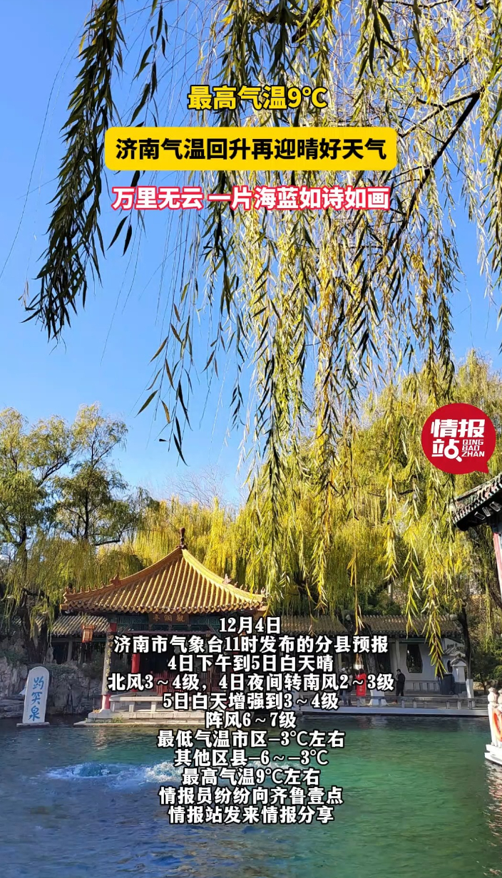 天气情报站|最高9℃!济南气温回升再迎晴好天气,天空蔚蓝成诗