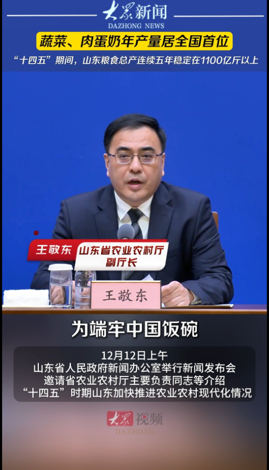 蔬菜、肉蛋奶年产量居全国首位!“十四五”期间,山东粮食总产连续五年稳定在1100亿斤以上