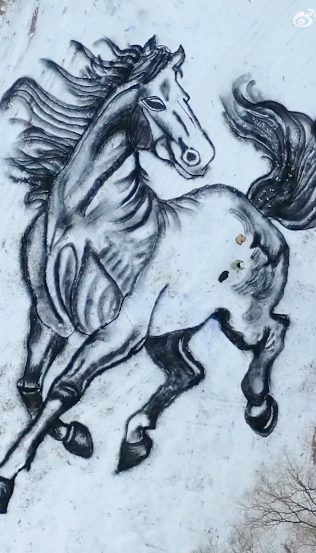 栩栩如生!3名教师雪中绘制巨型骏马图