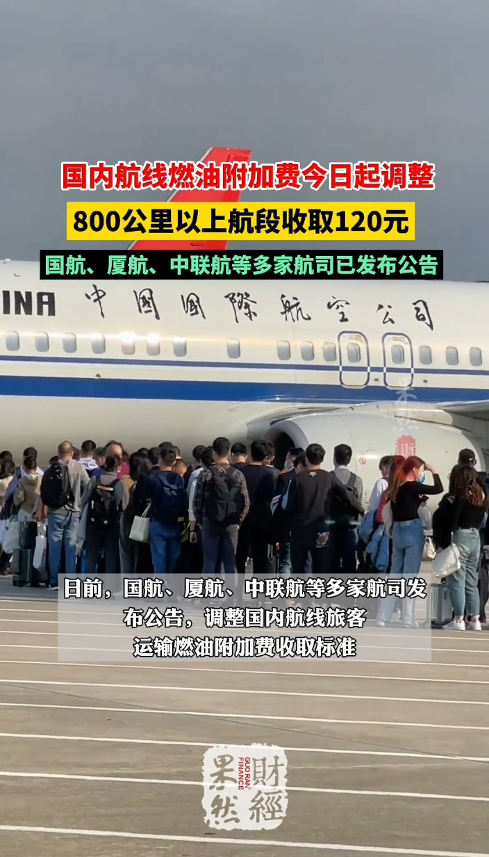 果然财经|国内航线燃油附加费今日起调整