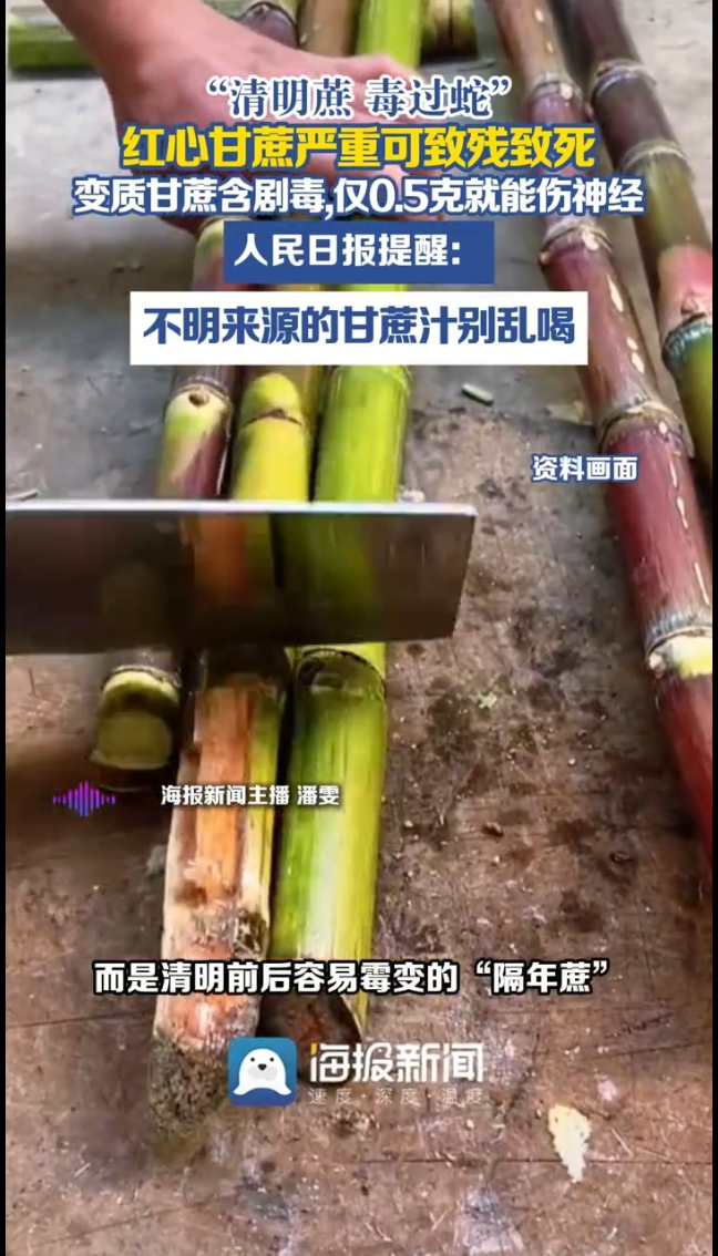 主播说丨“清明蔗,毒过蛇” 红心甘蔗严重可致残致死