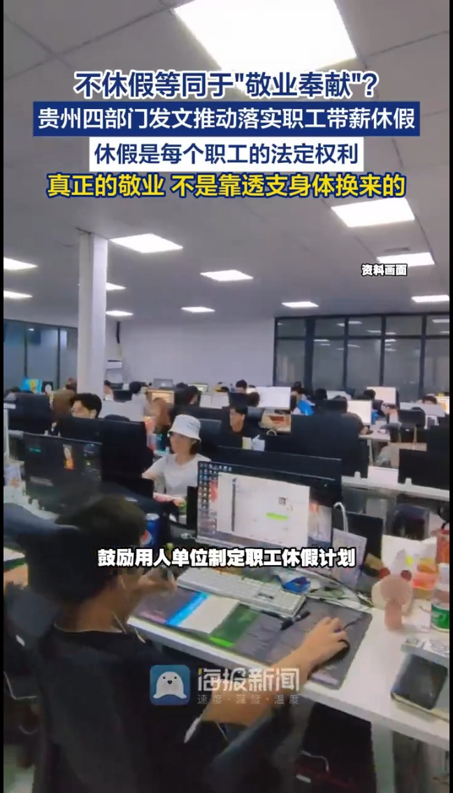 主播说|不休假等同于“敬业奉献”?贵州四部门发文推动落实职工带薪休假
