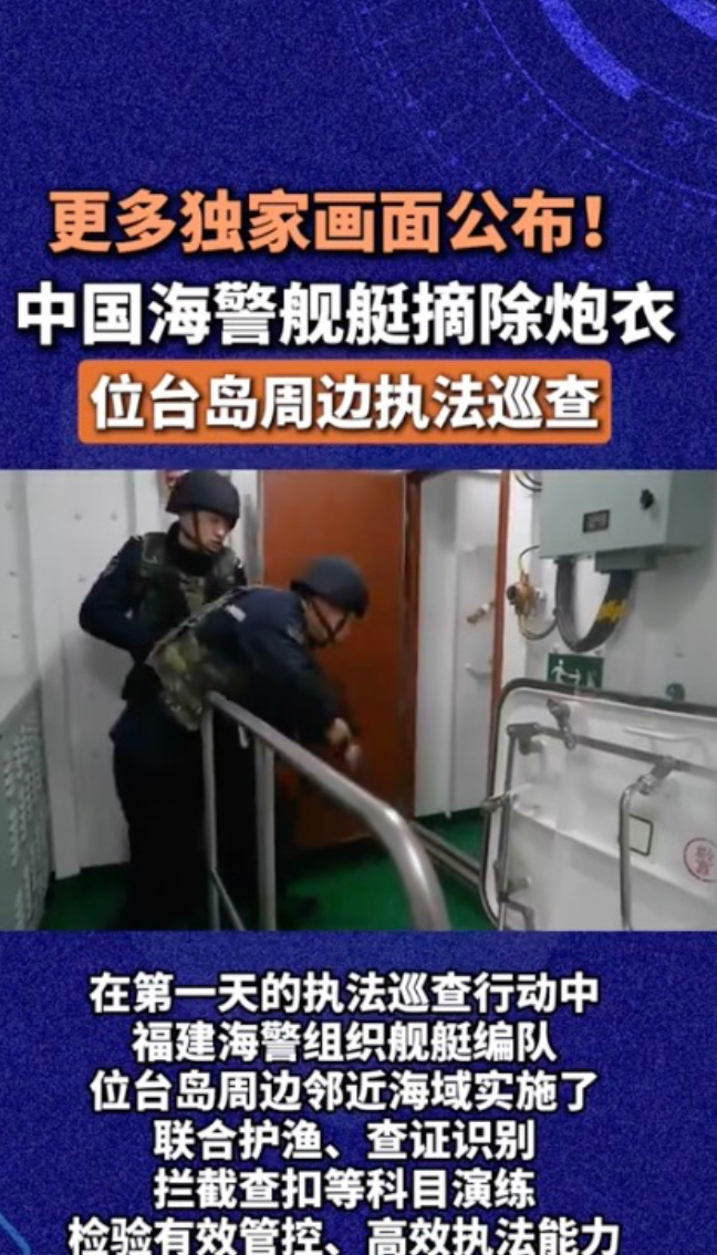 中国海警舰艇摘除炮衣,位台岛周边执法巡查