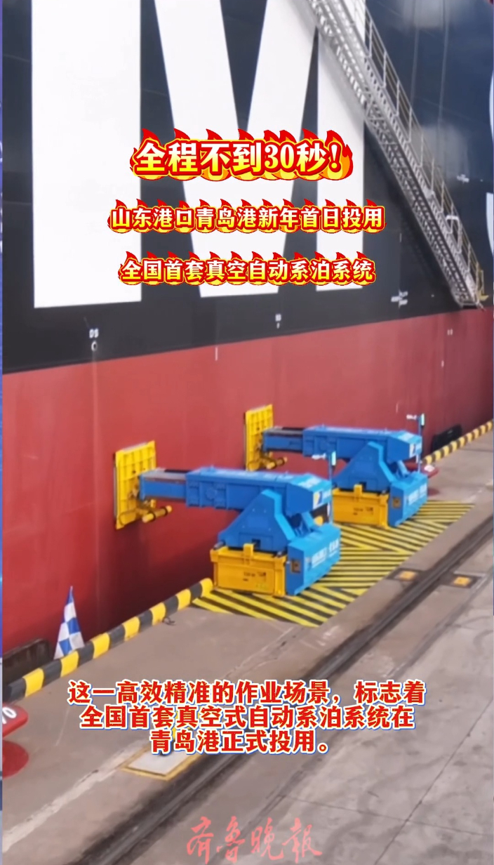 山东港口青岛港新年首日投用全国首套真空自动系泊系统