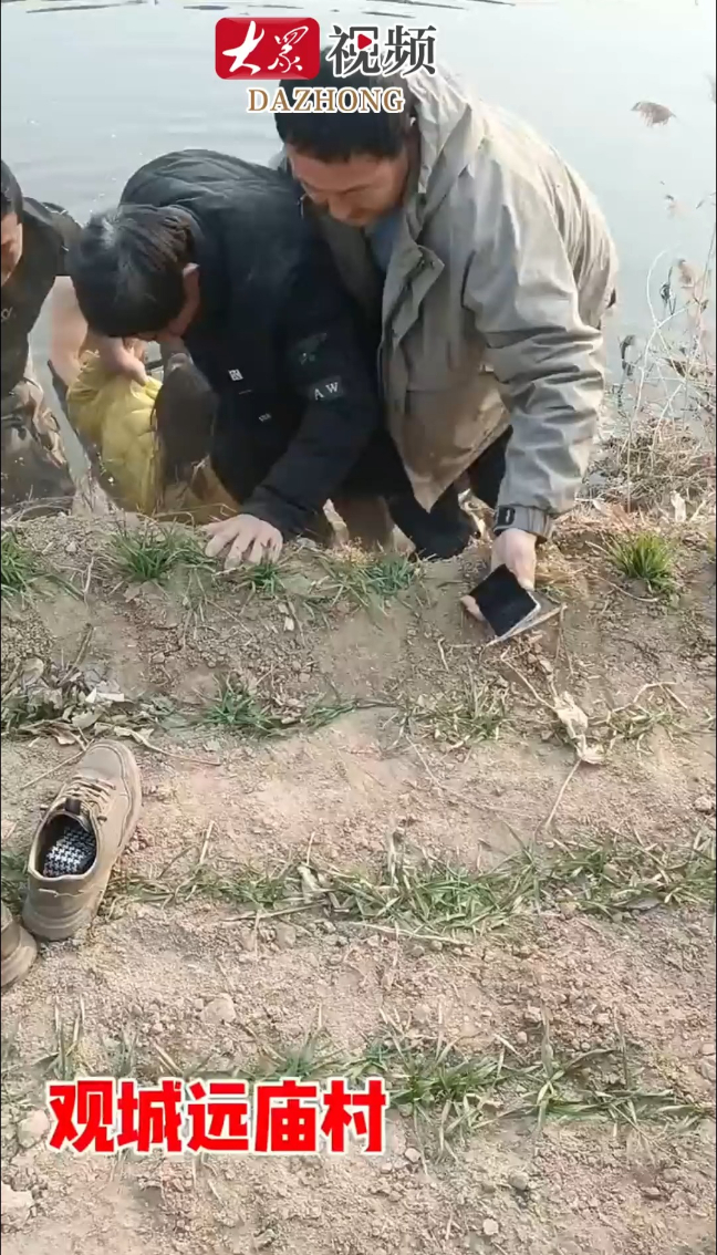 聊城好汉为救落水妇女,纵身一跃跳入冰河