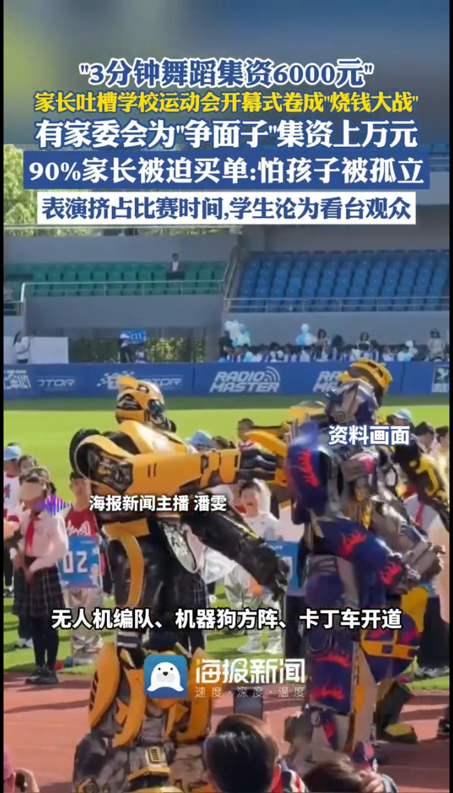 主播说丨“3分钟舞蹈集资6000元” 家长吐槽学校运动会开幕式卷成“烧钱大战” 有家委会为“争面子”集资上万元 90%家长被迫买单:怕孩子被孤立 表演挤占比赛时间,学生沦为看台观众