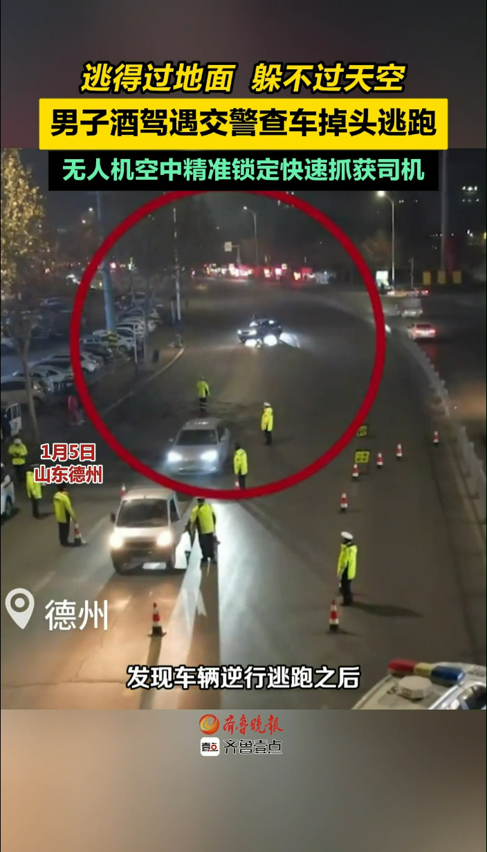果然视频|男子酒驾遇交警查车掉头逃跑,无人机精准锁定抓获司机