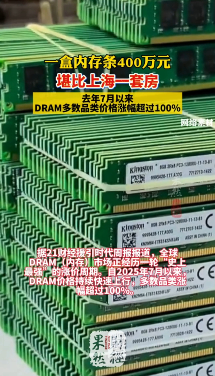 果然财经|史上最强涨价!内存成“理财产品”,一盒值400万?
