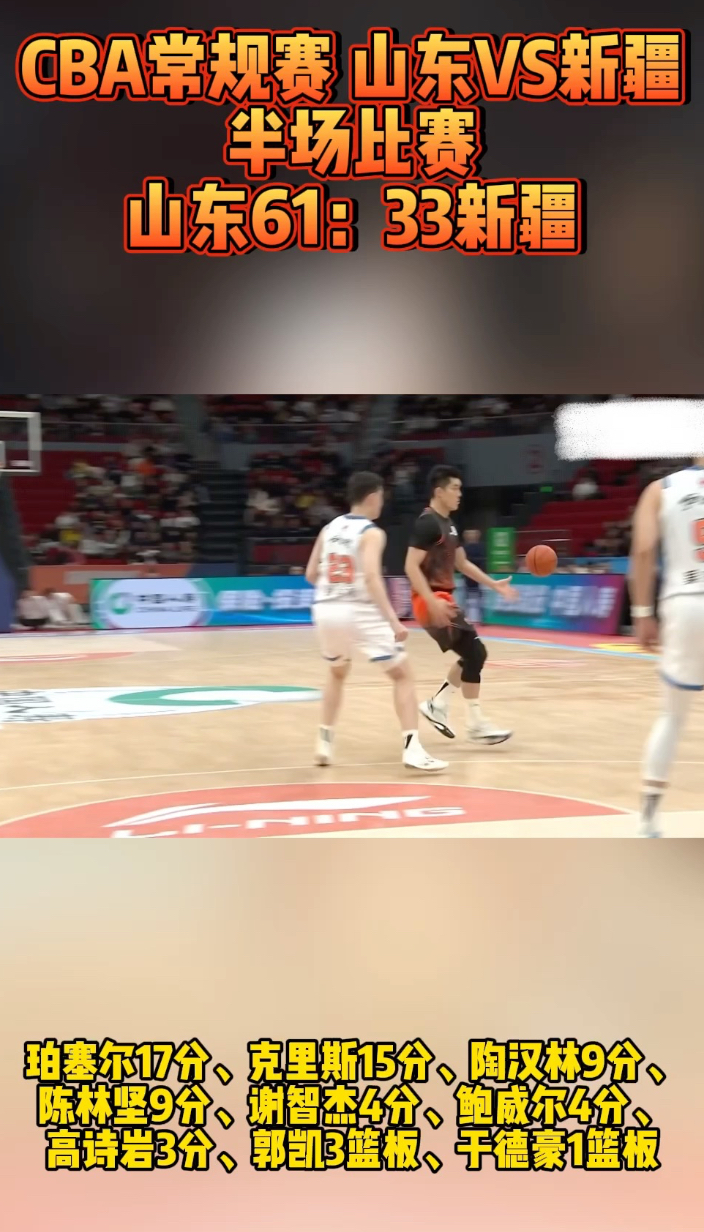 果然视频|CBA半场战报:山东61:33新疆,珀塞尔17分