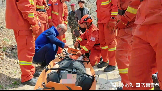 果然视频|女子爬山踏青崴伤脚,消防员用担架将其护送下山
