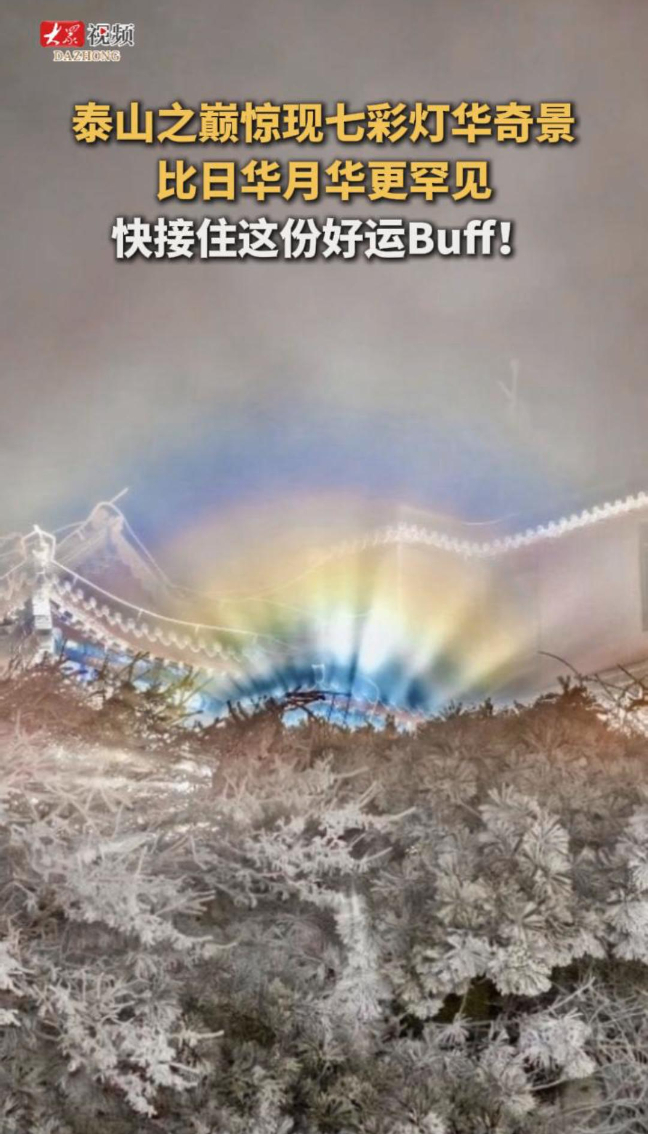 泰山之巅惊现七彩灯华奇景,比日华月华更罕见,快接住这份好运Buff!