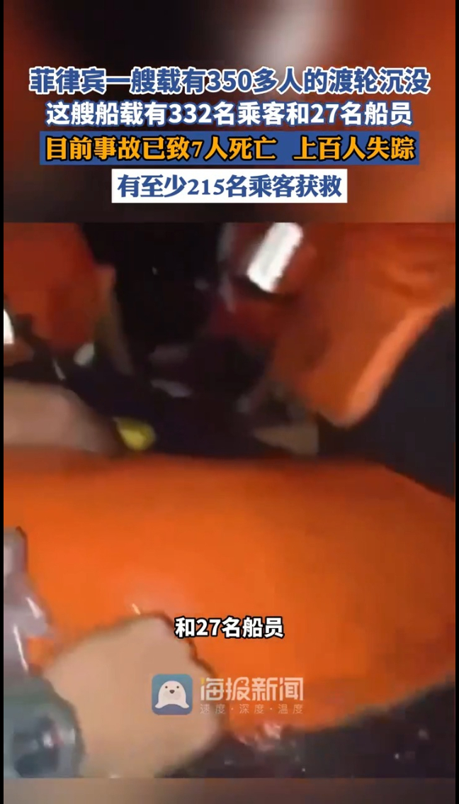 主播说丨菲律宾一艘载有350多人的渡轮沉没,这艘船载有332名乘客和27名船员