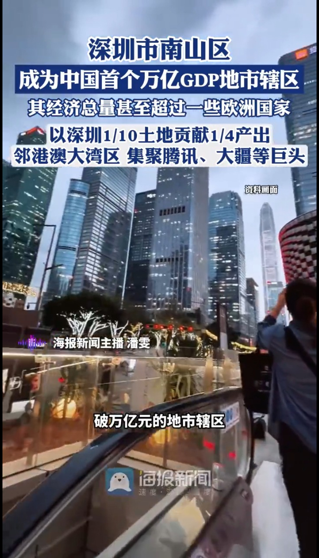 主播说丨深圳市南山区成为中国首个万亿GDP地市辖区 其经济总量甚至超过一些欧洲国家