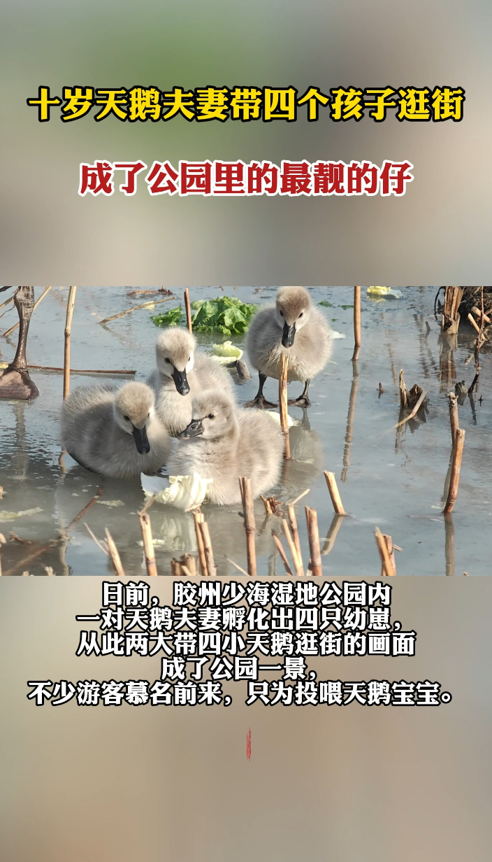 果然视频丨公园里的最靓的仔!天鹅夫妻带四只萌宝遛弯成网红