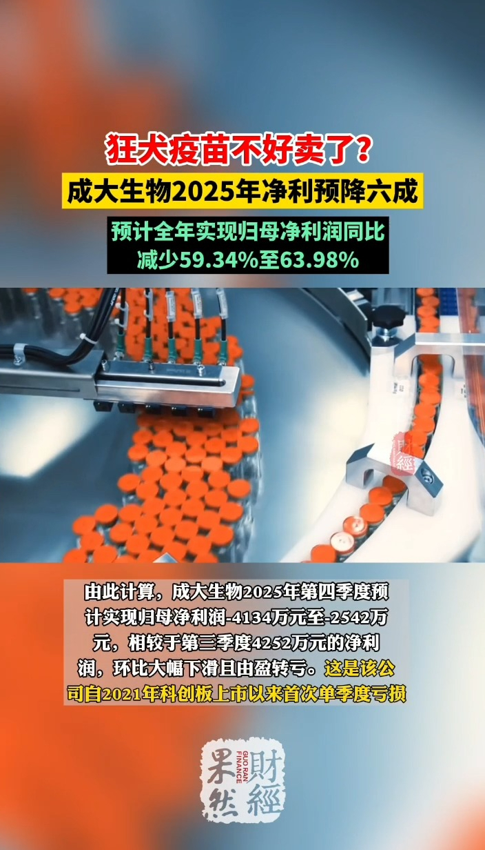 果然财经|狂犬疫苗不好卖了?成大生物2025年净利预降六成