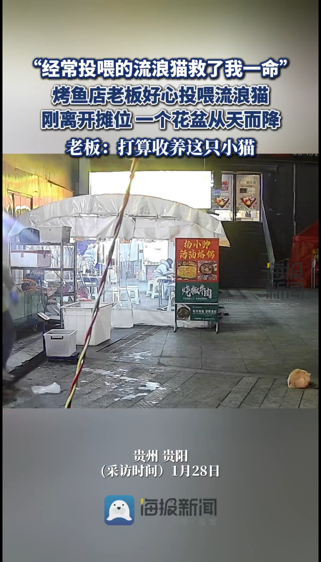 烤鱼店老板投喂流浪猫侥幸躲过花盆砸顶:打算收养这只小猫