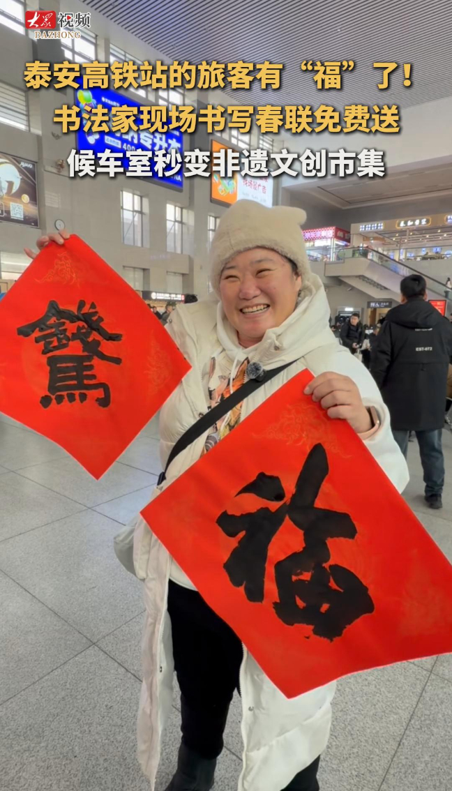 泰安高铁站的旅客有“福”了!书法家现场书写春联免费送,候车室秒变非遗文创市集