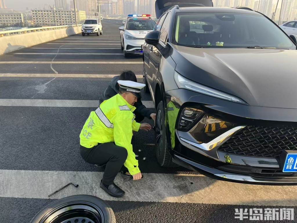外地游客车辆抛锚挡道,青岛热心警民协力解危急