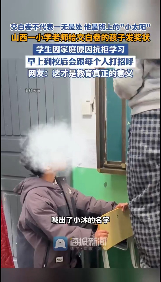 主播说丨交白卷不代表一无是处,他是班上的“小太阳”,山西一小学老师给交白卷的孩子发奖状
